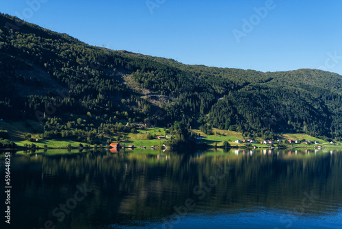 Fototapeta premium Eidsfjord in Norwegen bei schönem Wetter und Sonnenschein