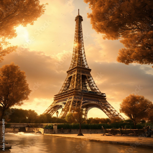 © Javad, Fototapeta premium eiffel tower at sunset