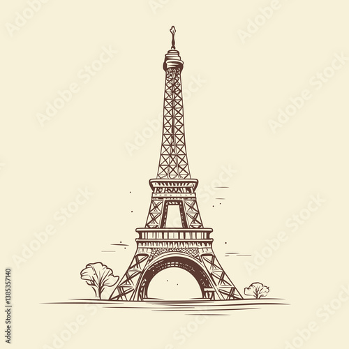 © BHM, Fototapeta premium Eiffel tower hand-drawn comic illustration. Eiffel tower. Vector doodle style cartoon illustration