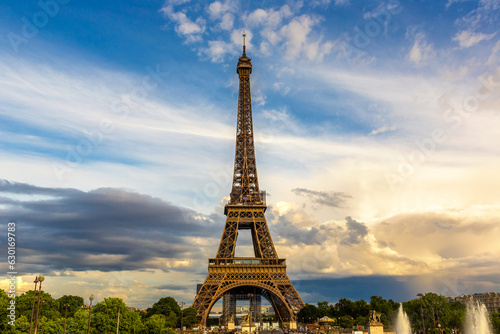 Fototapeta premium Eiffel Tower in Paris during beautiful sunset, France