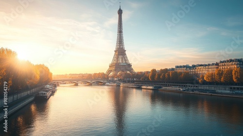 Fototapeta premium Eiffel Tower in Paris, France, on a bright morning with clear skies. 04f5d2df14f5