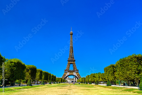 Fototapeta premium Eiffel Tower on the Champ de Mars in Paris. Major tourist attraction in France