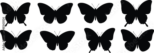 Fototapeta premium Eight black butterflies on white background