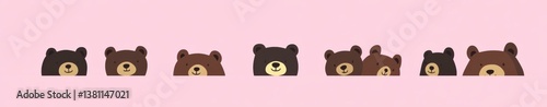 © Enjoy, Obraz premium Eight Brown and Black Pixel Art Bear Heads on Pink Background