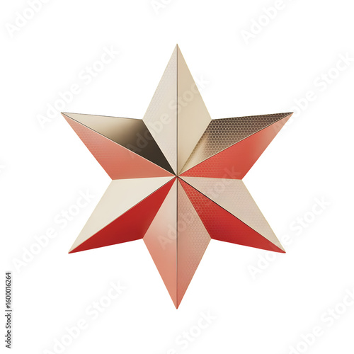 Obraz premium Eight Pointed Gold and Coral Star Geometric 3 D Render isolated on a...