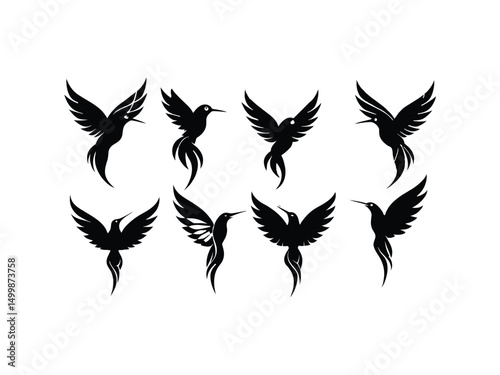 Fototapeta premium Eight stylized hummingbird silhouettes in flight