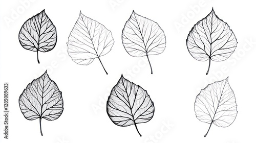 © kucret, Obraz premium Eight stylized leaves, line art, white background, design element