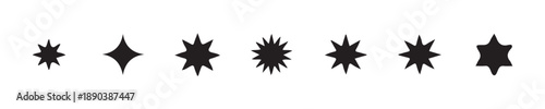 Obraz premium Eight variations of stylized shining star symbols showing increasing points and shapes