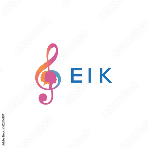 Naklejka premium EIK “Creative music logo with human silhouettes and treble clef in gradient colors, EIK Later Logo, modern artistic design isolated on white background”
