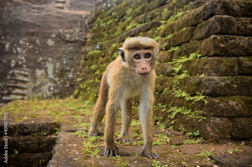 © Fotolla, Naklejka premium Ein Affe im Tempel des Sigiriya-Felsens in Sri Lanka