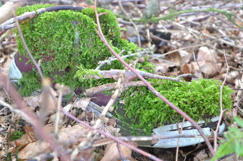 © anja69111, Fototapeta premium ein alter Schuh, von der Natur mit Moos überzogen