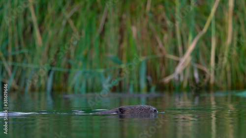 Fototapeta premium Ein Biber schwimmt in der Peene