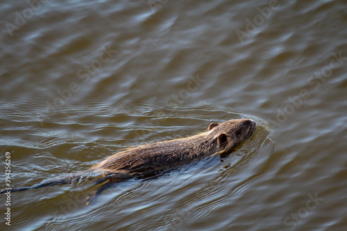 Fototapeta premium Ein Bisam, Nutria in einem Fluss.