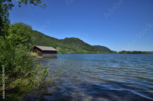 © Fotolla, Fototapeta premium Ein Bootshaus am Schliersee