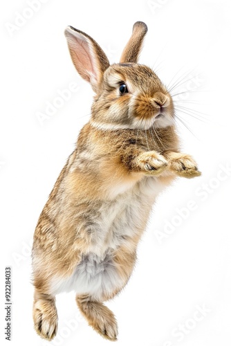 © Markus Herzog, Fototapeta premium Ein braunes springendes Kaninchen isoliert auf weißem Hintergrund