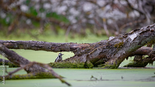 © Alexander von Düren, Obraz premium Ein Buntspecht auf Futtersuche an einem Birkenstamm