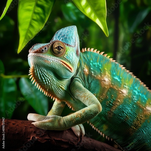 © Anita Mostofa, Obraz premium Ein Chamäleon im Regenwald