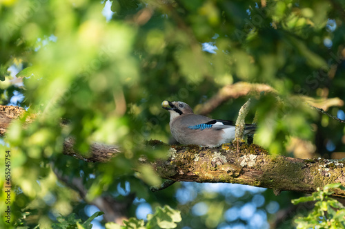 Obraz premium Ein Eichelhäher sitzt auf einen Ast in einer Eiche