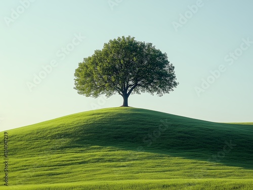 © jjjhh, Fototapeta premium Ein einsamer Baum auf einem Hügel unter einem sanft blauen Himmel