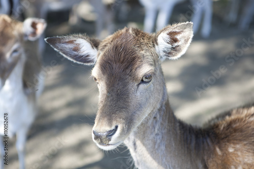 Fototapeta premium Ein einzelnes Reh in einer großen Herde