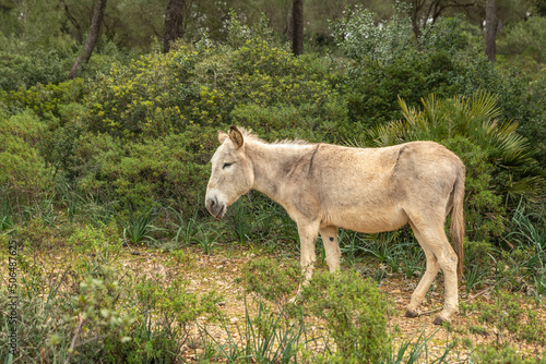 © Blende8, Obraz premium Ein Esel in einem Park auf Spaniens Insel Mallorca