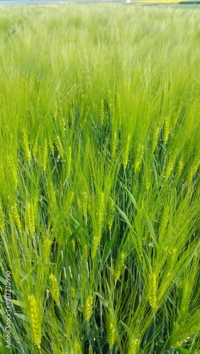 Naklejka premium Ein Feld mit Grünen Ähren von der Gerste