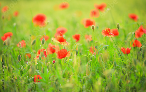 © Fotolla, Obraz premium Ein Feld mit Klatschmohn