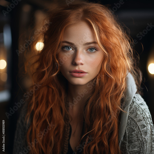 Fototapeta premium Ein Foto einer nordisch aussehenden, rothaarigen wunderschönen jungen 26...