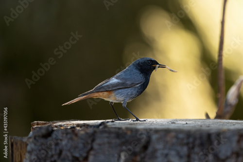 Obraz premium Ein Hausrotschwanz mit einen Wurm im Schnabel mit Blickrichtung Rechts