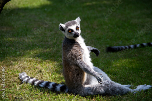 Fototapeta premium Ein Katta auf dem Boden sitzend in die Kamera blickend in Nahaufnahme