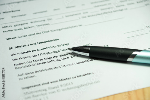 Fototapeta premium Ein Mietvertrag und ein Kugelschreiber