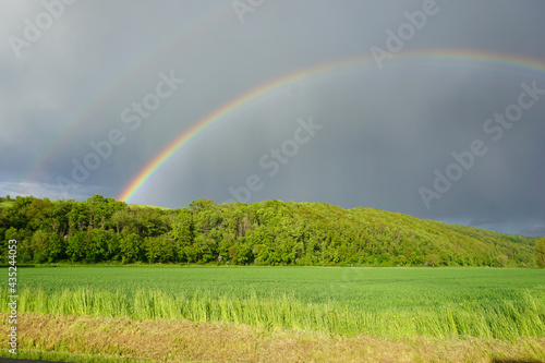 © Janet Worg, Naklejka premium Ein Regenbogen über den Feldern im Leinebergland bei Alfeld Leine