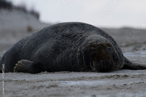 Obraz premium Ein schlafender Kegelrobbenbulle auf dem Strand von Helgoland
