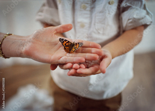 © ilfotokunst, Fototapeta premium ein schmetterling in der Hand