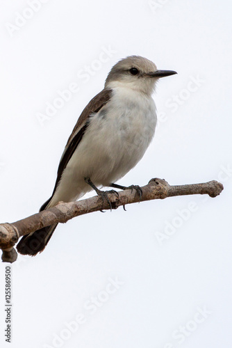 Fototapeta premium Ein Weißbinden-Nonnentyrann freigestellt in der Seitenansicht auf einem Ast sitzend