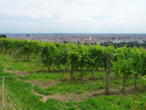 Fototapeta premium Ein Weingarten am Wilhelminenberg mit Blick über Wien.