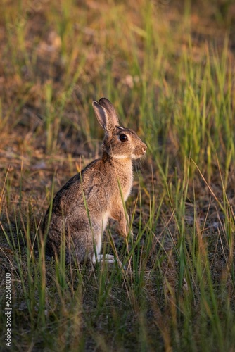 Fototapeta premium Ein wilder Hase auf einem Damm auf Rügen an der Ostsee
