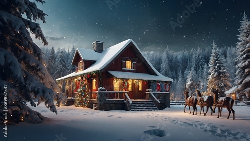 Naklejka premium Ein Wintertraum: Dorf unter Sternenhimmel