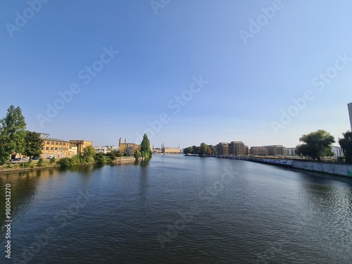 Obraz premium ein wunderschöner Blick auf die Spree (Fluss) in Berlin Oberschöneweide...