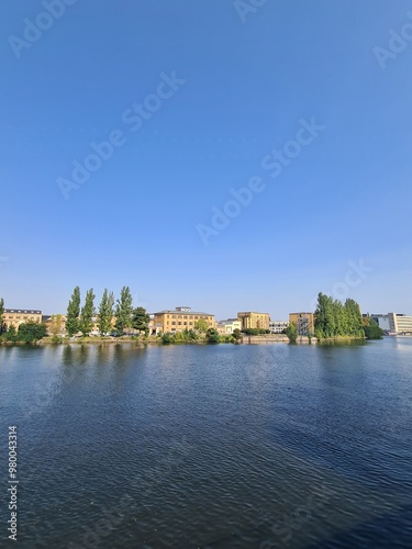 Obraz premium ein wunderschöner Blick auf die Spree (Fluss) in Berlin Oberschöneweide...