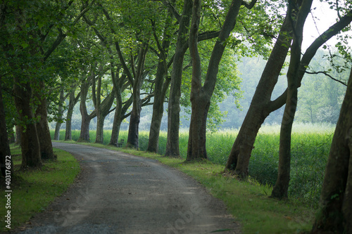 © Martin Günther, Obraz premium Eine Allee biegt nach links
