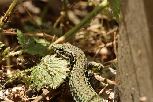 © Steffen, Fototapeta premium Eine Eidechse beim Sonnenbaden auf einem Baumstamm