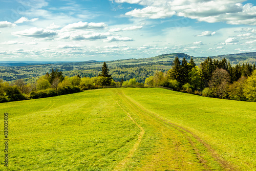 © Oliver Hlavaty, Obraz premium Eine Frühlingshafte Wanderung durch das wunderschöne Sinntal zum Schwarzen Berge bei Riedenberg - Bayern -Deutschland