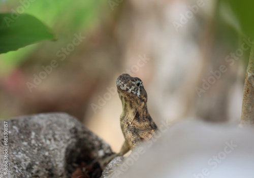 © boedefeld1969, Naklejka premium Eine gescheckte Eidechse mit einem geringelten Schwanz auf Kuba.