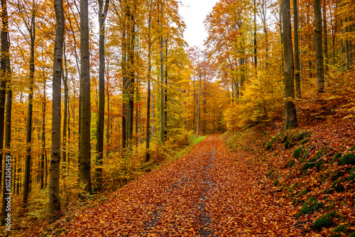 © Oliver Hlavaty, Fototapeta premium Eine herbstliche Fahrradtour durch den Thüringer Wald auf dem Mommelstein Radweg zwischen Schmalkalden und Brotterode - Thüringen - Deutschland
