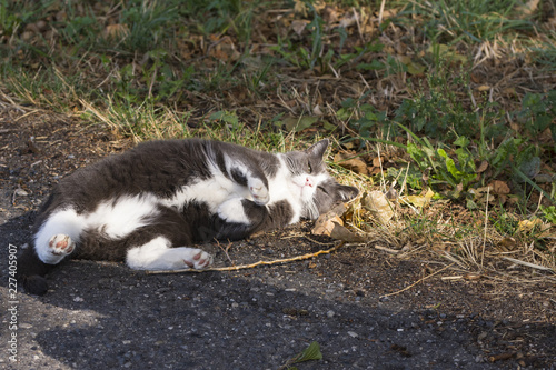 © biggi62, Fototapeta premium eine Katze liegt auf der Strasse