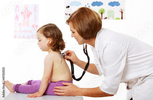 © Anke Thomass, Fototapeta premium Eine Kinderärztin hört ein Mädchen mit dem Stethoskop ab