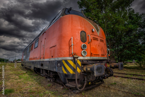 © jsr548, Fototapeta premium eine Lok vor dramatischem Himmel