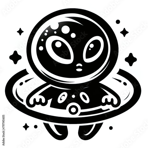Obraz premium Eine minimalistische schwarz weiße Vektorgrafik eines kleinen Aliens