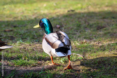 Obraz premium Eine Portrait einer Stockente in einem Teich.